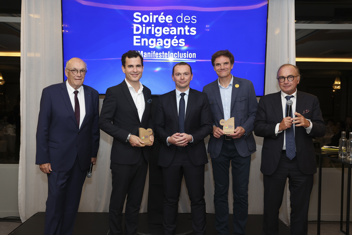 Ce mercredi 11 octobre 2023 à Paris, dans le cadre de la 1ère Soirée des Dirigeants Engagés, le Manifeste Inclusion a mis à l’honneur les entreprises et collectivités les plus innovantes et inspirantes pour l’emploi de collaborateurs en situation de handicap. Mobilisant 100 dirigeants français, des mondes privés et publics, cet événement organisé en collaboration avec le Groupe AEF Info et sous le haut patronage du Ministère du Travail, du Plein Emploi et de l’Insertion, en partenariat avec LVMH, EY, Onepoint et ENGIE, a distingué le groupe La Poste, la Manufacture Générale Horlogère, la Ville de Suresnes et Nespresso pour Café Joyeux dont les expérimentations ont valeur d’exemplarité. Objectif : passer ensemble du Manifeste à l’Action, et faire bouger les lignes de l’inclusion dans l’économie et l’emploi.